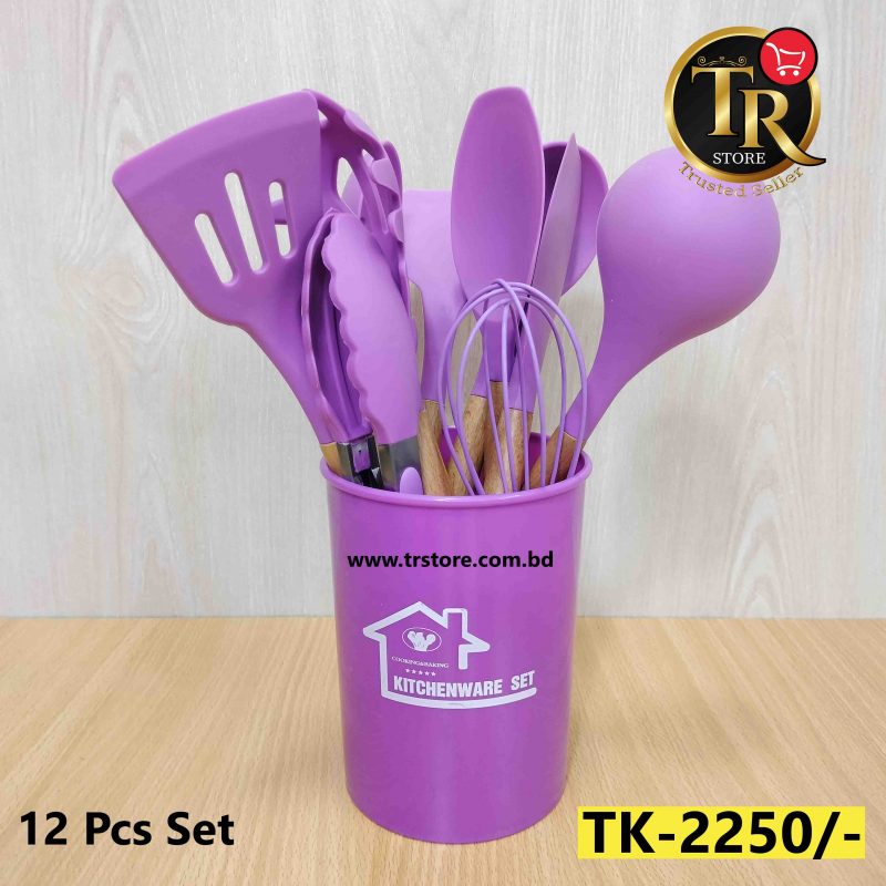 12pcs Wooden Silicone Kitchen Utensil Nonstick Purple